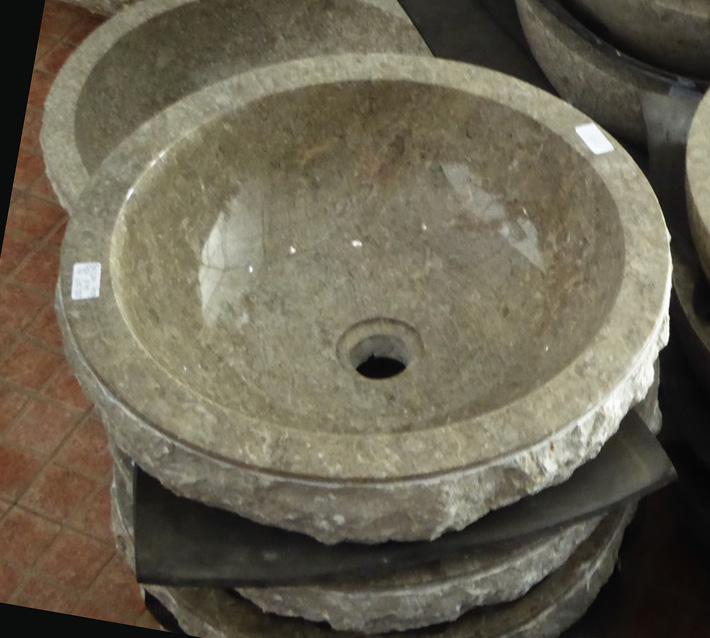 This shipment is filled with a variety of goodies including solid wood Teak Furniture, decorative carved wood panels and room dividers, plus stone statuary and fountains. Plus we’ll get in more natural stone sinks, stone mosaics, bags of loose stone, stone door mats, and bamboo poles in natural and black.