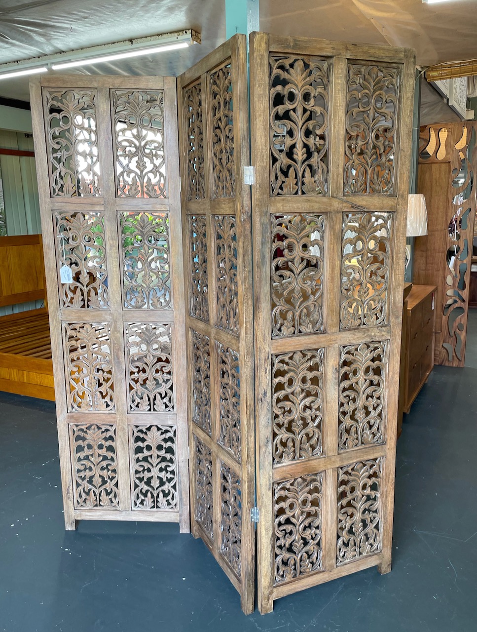 This shipment is filled with a variety of goodies including solid wood Teak Furniture, decorative carved wood panels and room dividers, plus stone statuary and fountains. Plus we’ll get in more natural stone sinks, stone mosaics, bags of loose stone, stone door mats, and bamboo poles in natural and black.